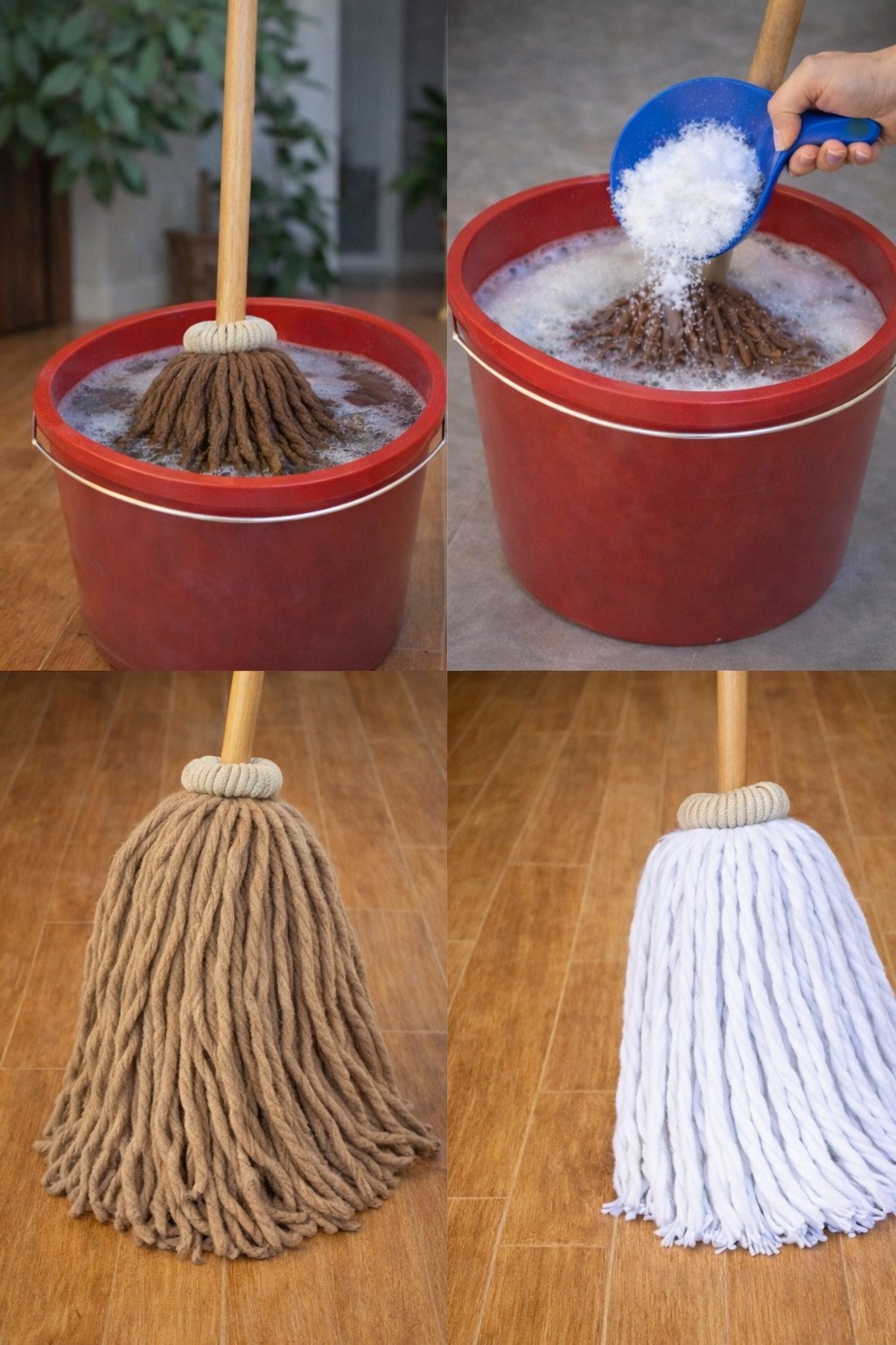 - Hot water (enough to fully submerge the mop)