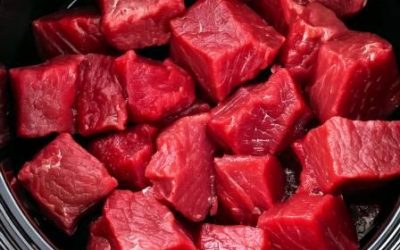 Put raw cubed beef in a slow cooker with these 3 ingredients. You won’t believe how good it tastes.