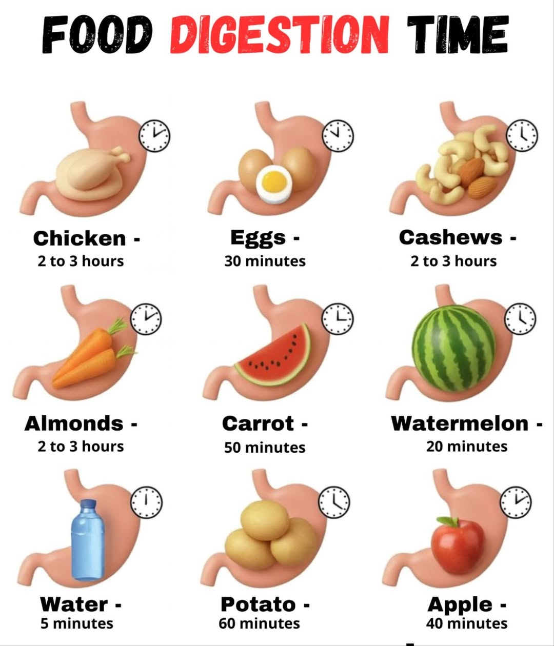 Did you know that different foods take different amounts of time to digest? Here's a handy guide to help you optimize your meals and support better digestion: