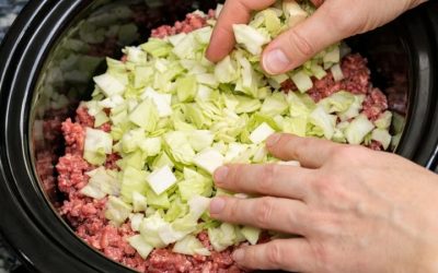 Layer chopped cabbage over raw ground beef, joined by these 3 ingredients, into slow cooker for a hearty dinner that I crave this week after week