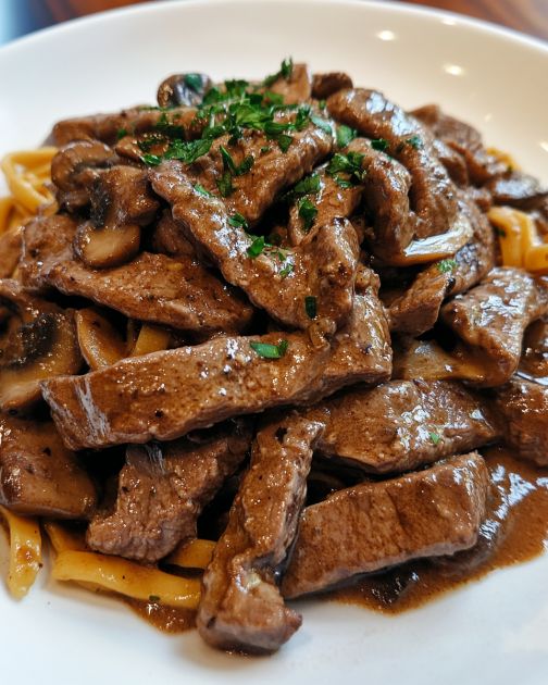 This creamy beef stroganoff pairs wonderfully with a side of buttered egg noodles, which soak up the rich sauce beautifully. For a touch of freshness, serve it alongside a simple green salad with a tangy vinaigrette. A slice of crusty bread is perfect for mopping up every last bit of the delicious sauce. If you're in the mood for something heartier, mashed potatoes or rice can also make a great accompaniment. Don't forget to sprinkle some fresh parsley or chives on top for a burst of color and flavor.